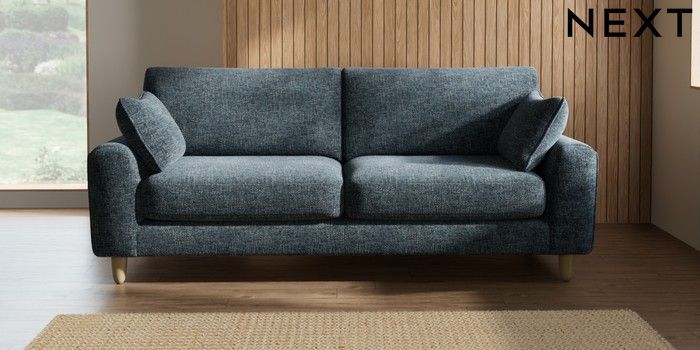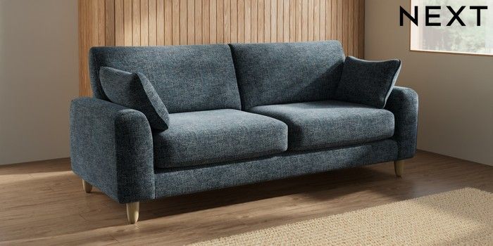 7.2.10 Campbell 3 Seater Sofa Chunky Chenille Dark Navy Blue High Leg - Light | Made Click here to use our website with more accessibility support, for example screen readers