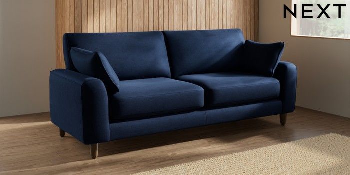 7.2.10 Campbell 3 Seater Sofa Luxe Chenille Navy Blue High Leg - Mid | Made Click here to use our website with more accessibility support, for example screen readers