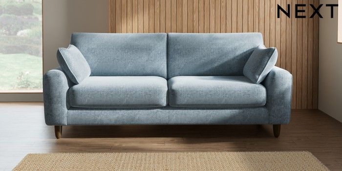 7.2.10 Campbell 3 Seater Sofa Plush Chenille Light Blue High Leg - Mid | Made Click here to use our website with more accessibility support, for example screen readers