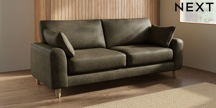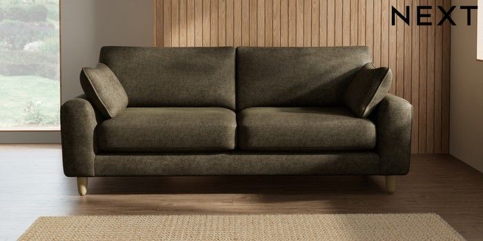 7.2.10 Campbell 3 Seater Sofa Plush Chenille Moss Green High Leg - Light | Made Click here to use our website with more accessibility support, for example screen readers