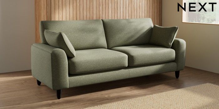 7.2.10 Campbell 3 Seater Sofa Tweedy Chenille Mid Moss Green High Leg - Dark | Made Click here to use our website with more accessibility support, for example screen readers