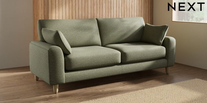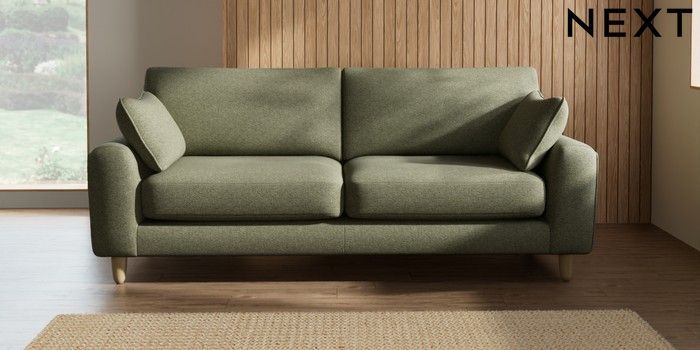 7.2.10 Campbell 3 Seater Sofa Tweedy Chenille Mid Moss Green High Leg - Light | Made Click here to use our website with more accessibility support, for example screen readers