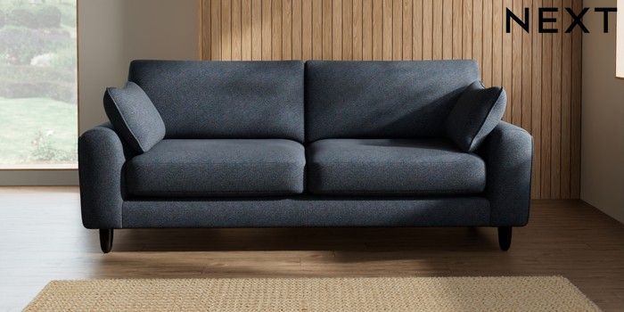 7.2.10 Campbell 3 Seater Sofa Tweedy Chenille Navy Blue High Leg - Dark | Made Click here to use our website with more accessibility support, for example screen readers