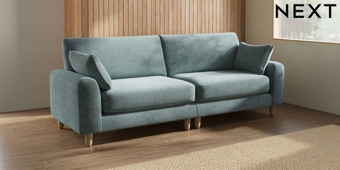 7.2.10 Campbell 4 Seater Large Sofa Chunky Chenille Light Teal Green High Leg - Light | Made Click here to use our website with more accessibility support, for example screen readers