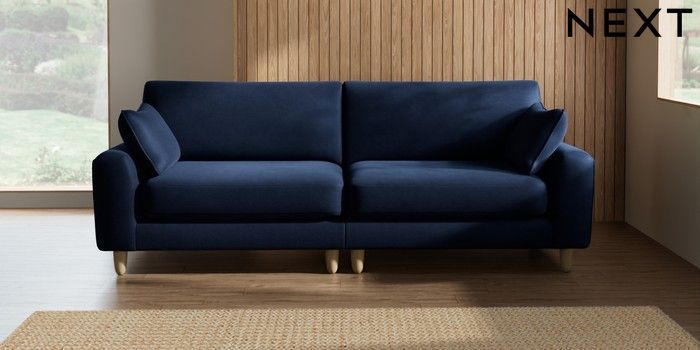 7.2.10 Campbell 4 Seater Large Sofa Luxe Chenille Navy Blue High Leg - Light | Made Click here to use our website with more accessibility support, for example screen readers