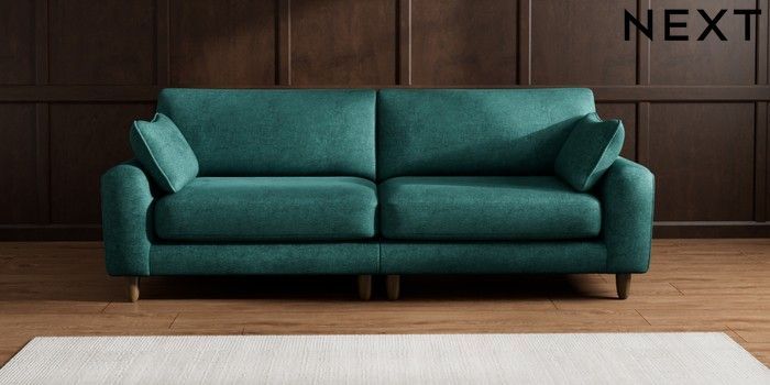 7.2.10 Campbell 4 Seater Large Sofa Plush Chenille Dark Teal Green High Leg - Mid | Made Click here to use our website with more accessibility support, for example screen readers