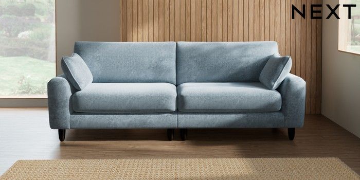 7.2.10 Campbell 4 Seater Large Sofa Plush Chenille Light Blue High Leg - Dark | Made Click here to use our website with more accessibility support, for example screen readers
