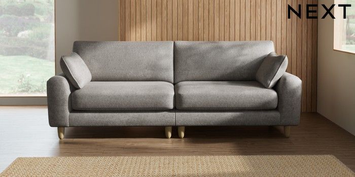 7.2.10 Campbell 4 Seater Large Sofa Plush Chenille Light Grey High Leg - Light | Made Click here to use our website with more accessibility support, for example screen readers