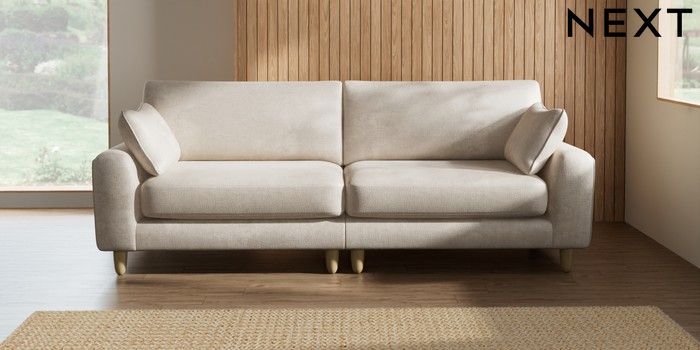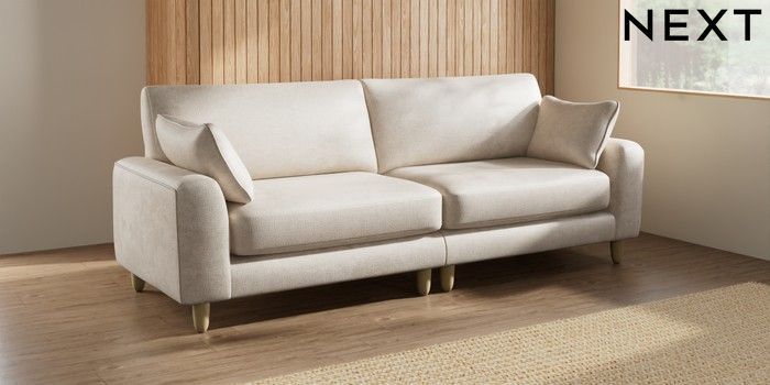 7.2.10 Campbell 4 Seater Large Sofa Plush Chenille Oyster High Leg - Light | Made Click here to use our website with more accessibility support, for example screen readers