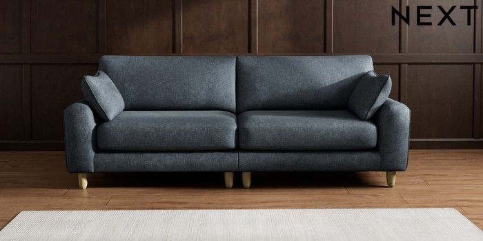 7.2.10 Campbell 4 Seater Large Sofa Plush Chenille Slate Blue High Leg - Light | Made Click here to use our website with more accessibility support, for example screen readers