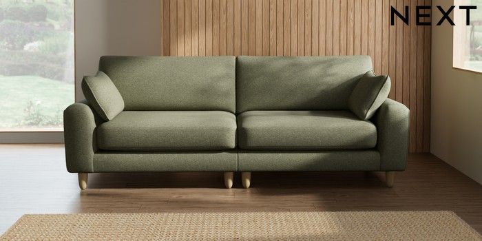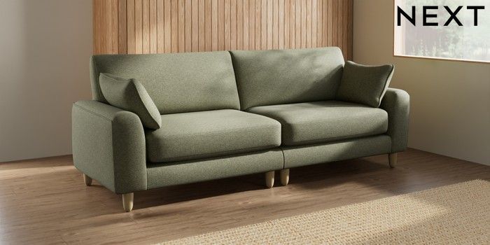 7.2.10 Campbell 4 Seater Large Sofa Tweedy Chenille Mid Moss Green High Leg - Light | Made Click here to use our website with more accessibility support, for example screen readers