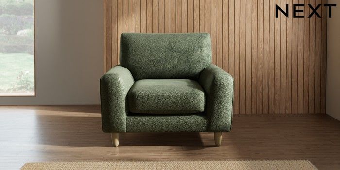 7.2.10 Campbell Armchair Boucle Chenille Dark Moss Green High Leg - Light | Made Click here to use our website with more accessibility support, for example screen readers