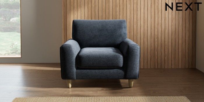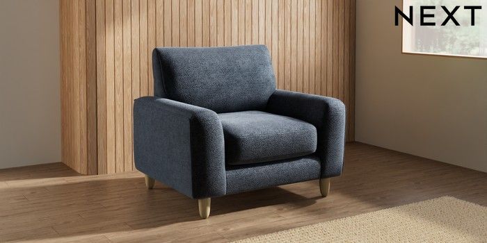 7.2.10 Campbell Armchair Boucle Chenille Dark Slate Blue High Leg - Light | Made Click here to use our website with more accessibility support, for example screen readers