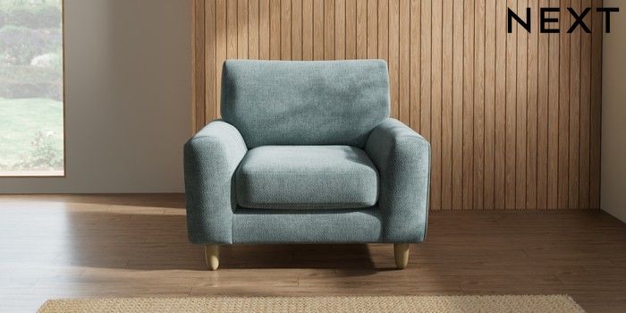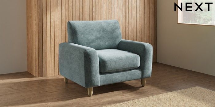7.2.10 Campbell Armchair Chunky Chenille Light Teal Green High Leg - Light | Made Click here to use our website with more accessibility support, for example screen readers
