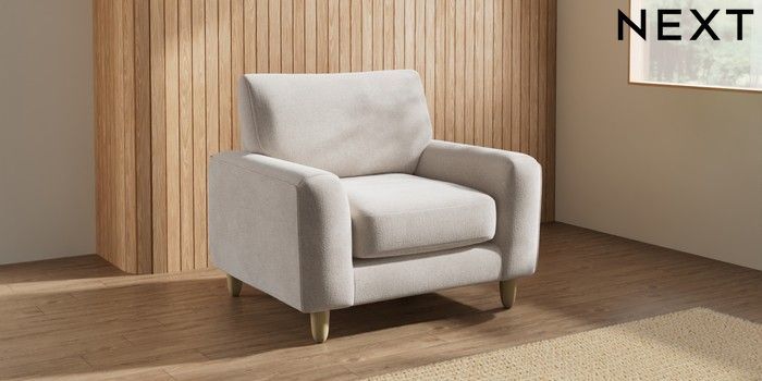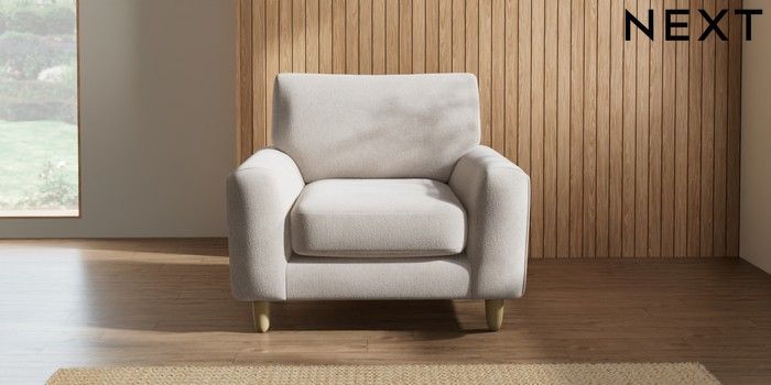 7.2.10 Campbell Armchair Chunky Chenille Oyster High Leg - Light | Made Click here to use our website with more accessibility support, for example screen readers
