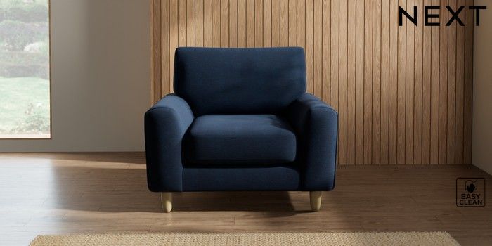7.2.10 Campbell Armchair Fine Chenille Easy Clean Dark Navy Blue High Leg - Light | Made Click here to use our website with more accessibility support, for example screen readers