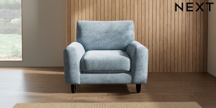 7.2.10 Campbell Armchair Plush Chenille Light Blue High Leg - Dark | Made Click here to use our website with more accessibility support, for example screen readers