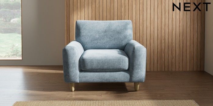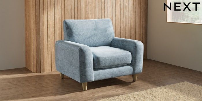7.2.10 Campbell Armchair Plush Chenille Light Blue High Leg - Light | Made Click here to use our website with more accessibility support, for example screen readers
