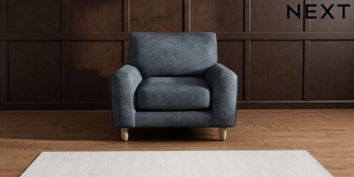 7.2.10 Campbell Armchair Plush Chenille Slate Blue High Leg - Light | Made Click here to use our website with more accessibility support, for example screen readers