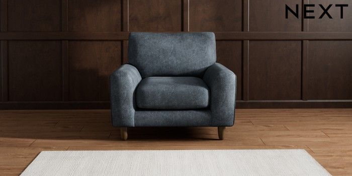 7.2.10 Campbell Armchair Plush Chenille Slate Blue High Leg - Mid | Made Click here to use our website with more accessibility support, for example screen readers