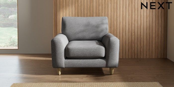 7.2.10 Campbell Armchair Studio Chenille Mid Grey High Leg - Light | Made Click here to use our website with more accessibility support, for example screen readers