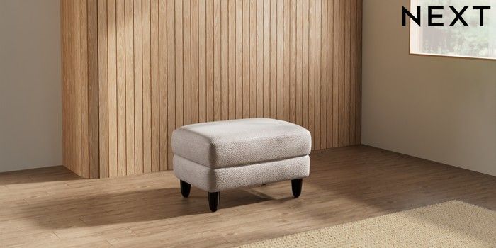 7.2.10 Campbell Footstool Boucle Chenille Light Natural High Leg - Dark | Made Click here to use our website with more accessibility support, for example screen readers