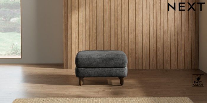 7.2.10 Campbell Footstool Boucle Weave Easy Clean Charcoal Grey High Leg - Mid | Made Click here to use our website with more accessibility support, for example screen readers