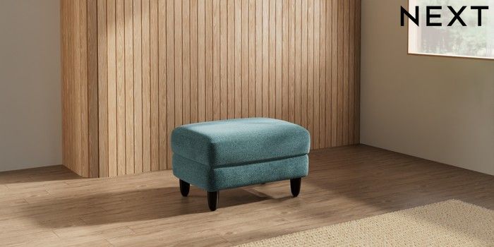 7.2.10 Campbell Footstool Chunky Chenille Mid Teal Green High Leg - Dark | Made Click here to use our website with more accessibility support, for example screen readers
