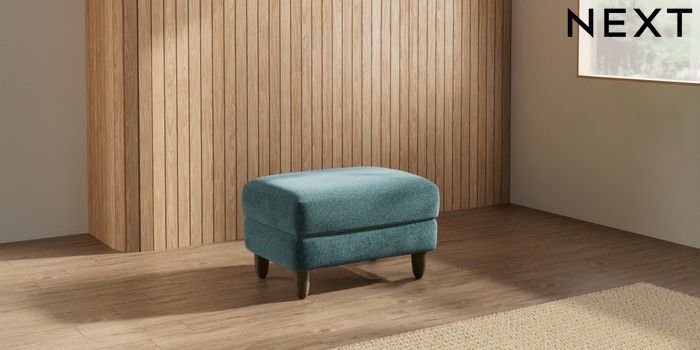 7.2.10 Campbell Footstool Chunky Chenille Mid Teal Green High Leg - Mid | Made Click here to use our website with more accessibility support, for example screen readers