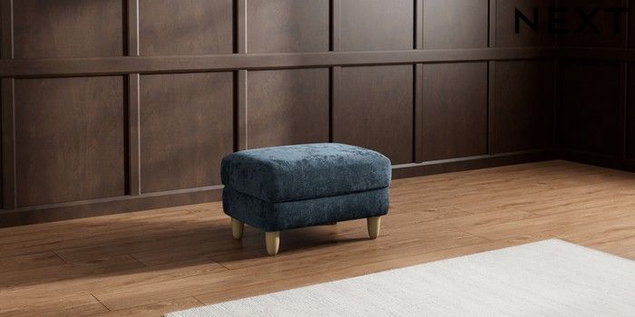7.2.10 Campbell Footstool Distressed Velour Midnight Blue High Leg - Light | Made Click here to use our website with more accessibility support, for example screen readers