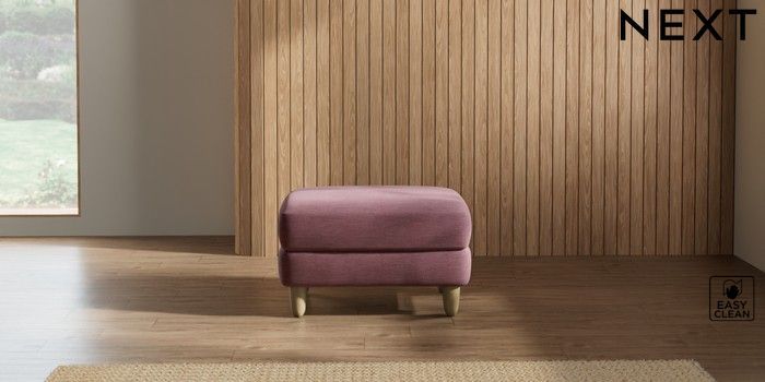 7.2.10 Campbell Footstool Fine Chenille Easy Clean Mid Mulberry Purple High Leg - Light | Made Click here to use our website with more accessibility support, for example screen readers