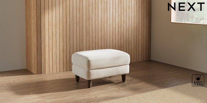 7.2.10 Campbell Footstool Fine Chenille Easy Clean Oyster High Leg - Mid | Made Click here to use our website with more accessibility support, for example screen readers