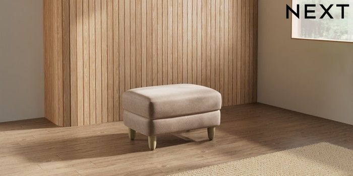 7.2.10 Campbell Footstool Luxe Chenille Mid Natural High Leg - Light | Made Click here to use our website with more accessibility support, for example screen readers