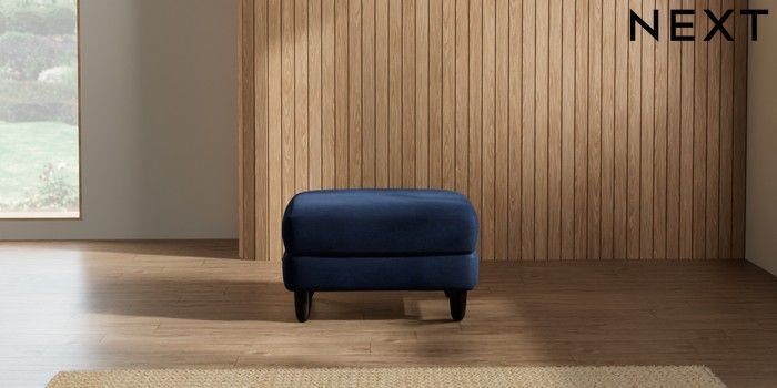 7.2.10 Campbell Footstool Luxe Chenille Navy Blue High Leg - Dark | Made Click here to use our website with more accessibility support, for example screen readers