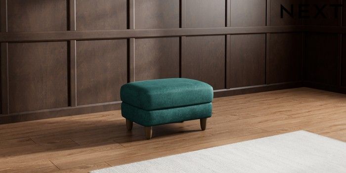 7.2.10 Campbell Footstool Plush Chenille Dark Teal Green High Leg - Mid | Made Click here to use our website with more accessibility support, for example screen readers
