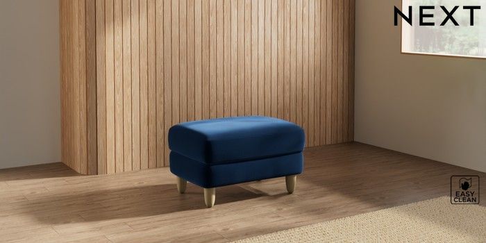 7.2.10 Campbell Footstool Plush Velvet Easy Clean Navy Blue High Leg - Light | Made Click here to use our website with more accessibility support, for example screen readers