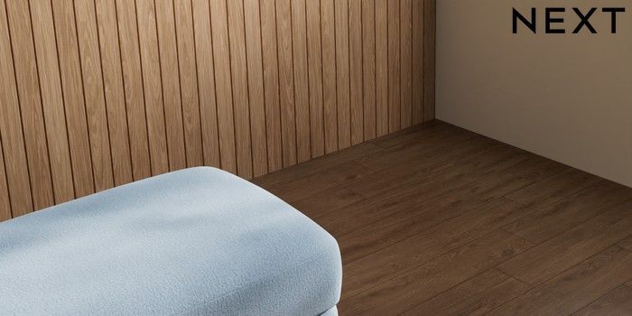 7.2.10 Campbell Footstool Relaxed Linen Look Mid Blue High Leg - Light | Made Click here to use our website with more accessibility support, for example screen readers