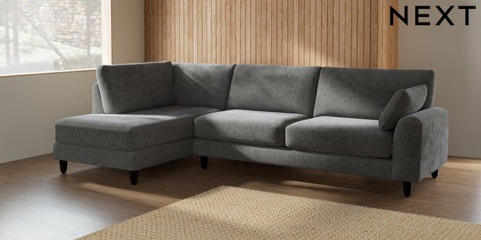 7.2.10 Campbell Large Corner Chaise - Left Hand Chunky Chenille Dark Grey High Leg - Dark | Made Click here to use our website with more accessibility support, for example screen readers