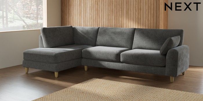 7.2.10 Campbell Large Corner Chaise - Left Hand Chunky Chenille Dark Grey High Leg - Light | Made Click here to use our website with more accessibility support, for example screen readers