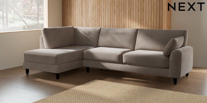 7.2.10 Campbell Large Corner Chaise - Left Hand Chunky Chenille Light Dove High Leg - Dark | Made Click here to use our website with more accessibility support, for example screen readers