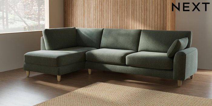 7.2.10 Campbell Large Corner Chaise - Left Hand Chunky Texture Mid Forest Green High Leg - Light | Made Click here to use our website with more accessibility support, for example screen readers