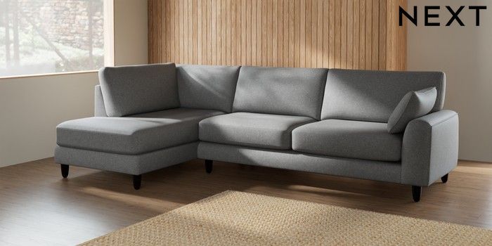 7.2.10 Campbell Large Corner Chaise - Left Hand Chunky Weave Mid Grey High Leg - Dark | Made Click here to use our website with more accessibility support, for example screen readers