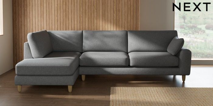 7.2.10 Campbell Large Corner Chaise - Left Hand Chunky Weave Mid Grey High Leg - Light | Made Click here to use our website with more accessibility support, for example screen readers