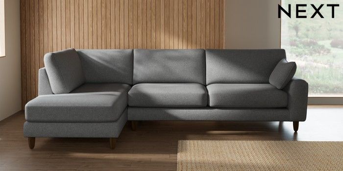 7.2.10 Campbell Large Corner Chaise - Left Hand Chunky Weave Mid Grey High Leg - Mid | Made Click here to use our website with more accessibility support, for example screen readers