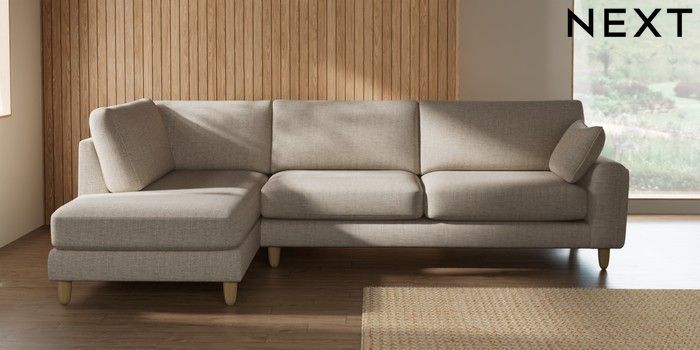 7.2.10 Campbell Large Corner Chaise - Left Hand Chunky Weave Mid Natural High Leg - Light | Made Click here to use our website with more accessibility support, for example screen readers