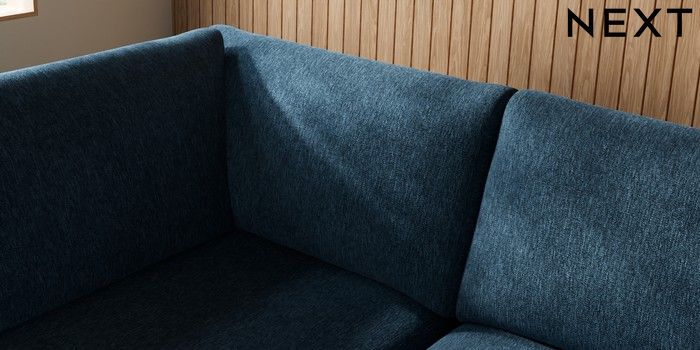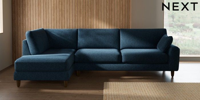 7.2.10 Campbell Large Corner Chaise - Left Hand Cotswold Chenille Dark Blue High Leg - Mid | Made Click here to use our website with more accessibility support, for example screen readers