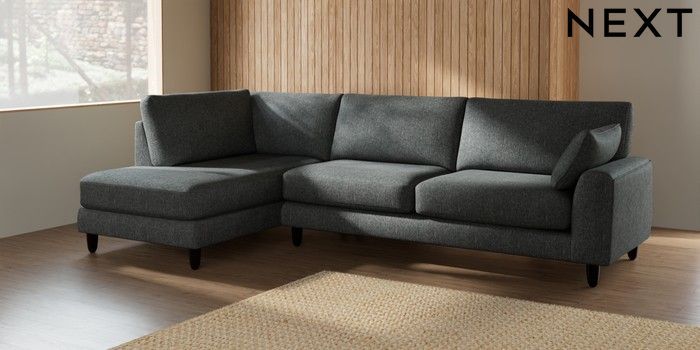 7.2.10 Campbell Large Corner Chaise - Left Hand Cotswold Chenille Dark Grey High Leg - Dark | Made Click here to use our website with more accessibility support, for example screen readers