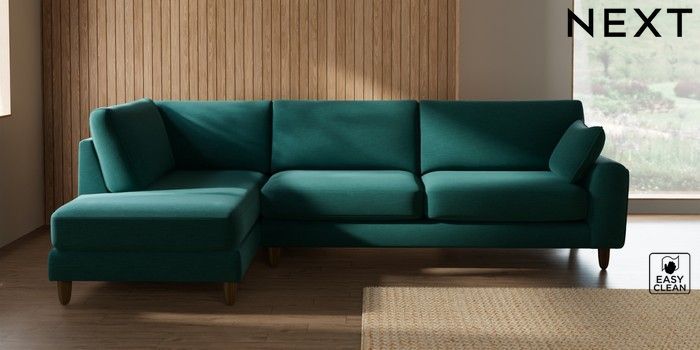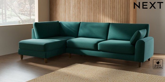 7.2.10 Campbell Large Corner Chaise - Left Hand Fine Chenille Easy Clean Dark Juniper Green High Leg - Mid | Made Click here to use our website with more accessibility support, for example screen readers