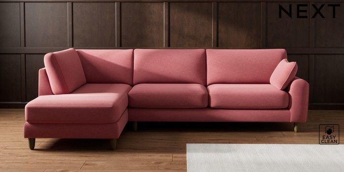 7.2.10 Campbell Large Corner Chaise - Left Hand Fine Chenille Easy Clean Mid Pink High Leg - Mid | Made Click here to use our website with more accessibility support, for example screen readers