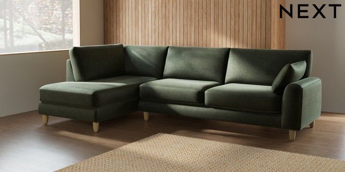 7.2.10 Campbell Large Corner Chaise - Left Hand Luxe Chenille Mid Green High Leg - Light | Made Click here to use our website with more accessibility support, for example screen readers